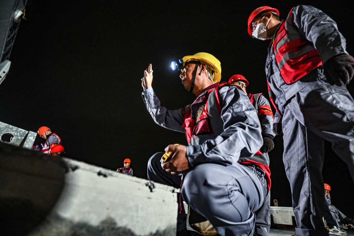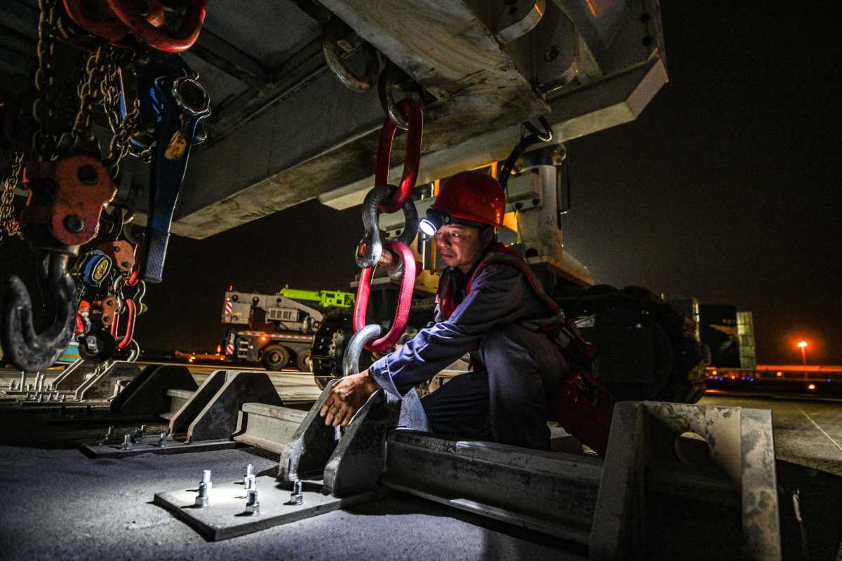当夜色深沉,宁波机场场站内,所有飞机“归巢”,整齐排列;飞机跑道上灯火通明,几十名身着反光背心的工人聚成一团,正在给跑道的“地板”打孔——方便安装卡扣,好把“老地板”垂直吊起。